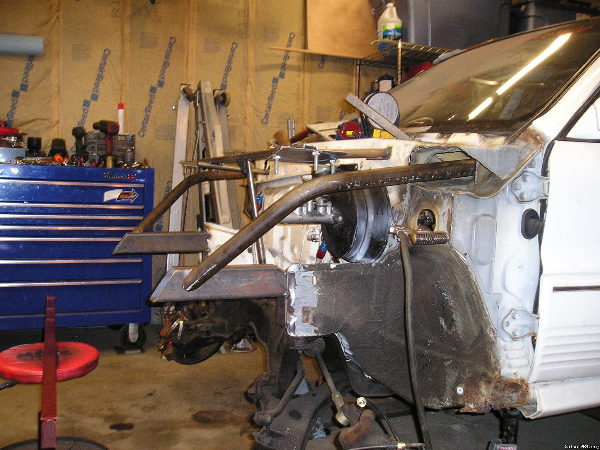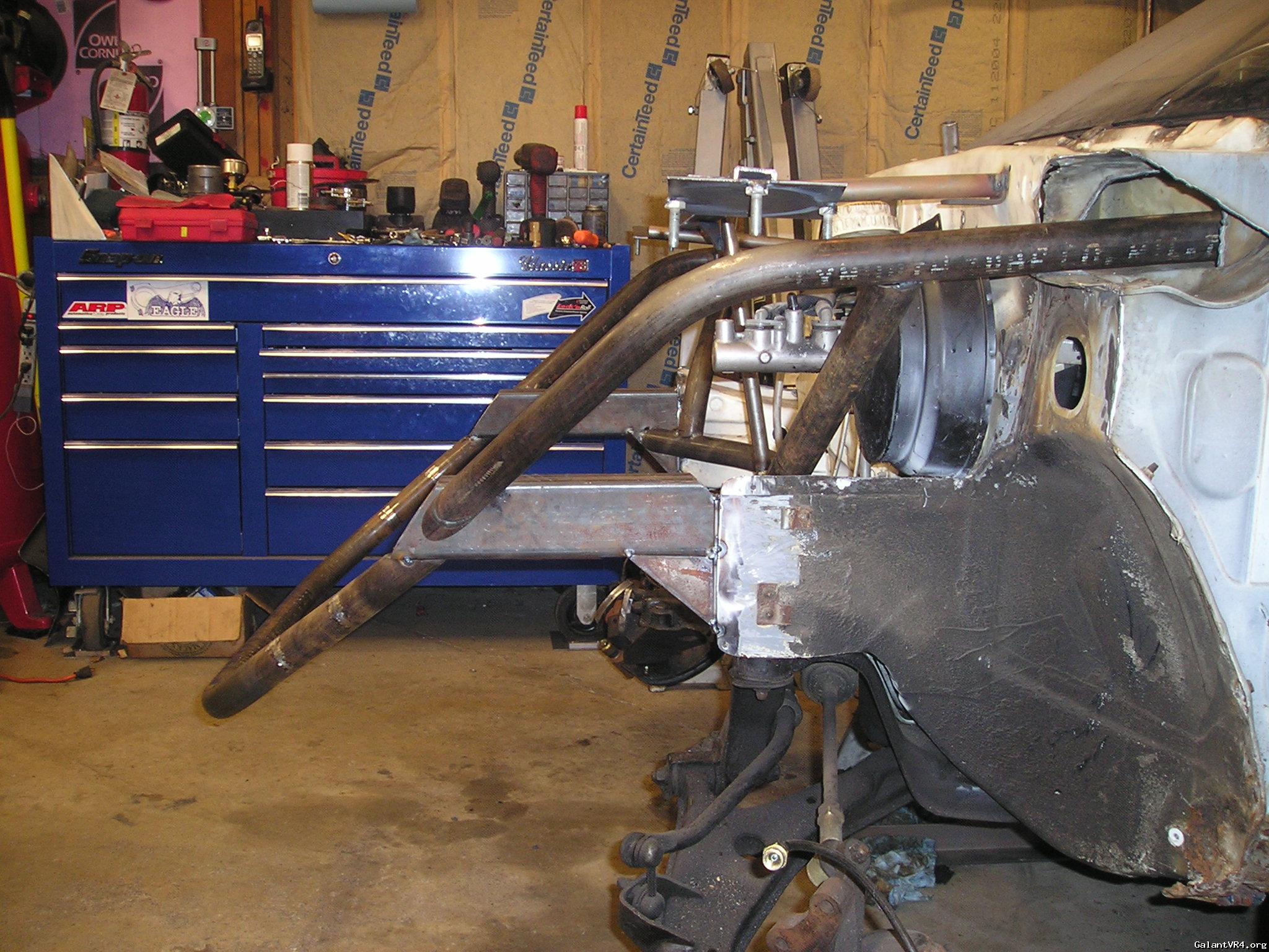 I have a tube bender with dies for 1 5/8" and 1 3/4" pipe and a computer program to lay out the bends and what not. The front core support has been cut and modified before removal. I plan to make the fenders, front bumper, head lights, grill has 1 piece that can be removed for working on the car. The hood will be held on with 4 hood pins. I do all my own work on the car, I did have a shop that I used to co-own but I am working out of my garage at home again.