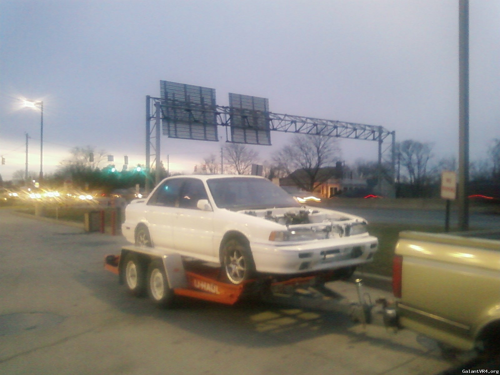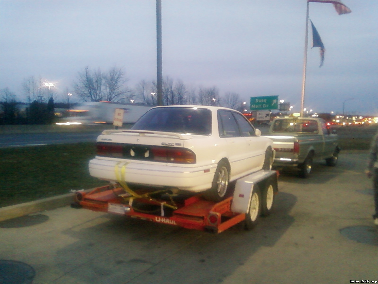 I asked the guy, "Even if it doesn't have an engine or transmission?" He goes nope sorry. And this is the point where I flipped out. Chris (BoostedAWD91) will vouch for this. I pretty much said, "What the f***." "Your telling me, that after I paid for you to install a hitch so I could tow my car back, your telling me I can't do it now." Guy was replied, "Yup sorry." I told him that someone fucked up and they should of told me about this BEFORE I had the hitch installed. He gave me some blank stare. Then I continued to flip out and demanded they remove the hitch right now and give me my money back. U-haul give me my money back? HA! They then changed the car from Galant VR4 to a Galant GS which without the AWD is light enough to tow.