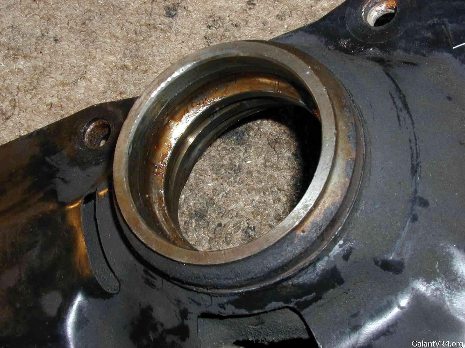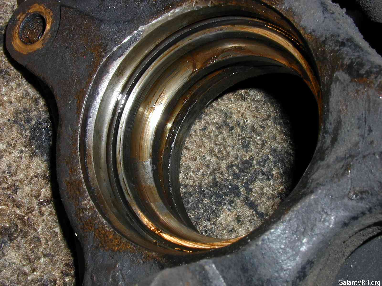 this is the axle side, the snap ring is gone, you can see the bearing outer race stuck in there