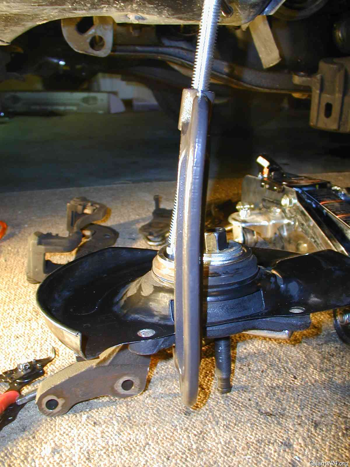 ok, the wheel bearing just won't come out, it just won't budge at all, I can't even use a press to get it out since I have noting to hold on to, it's flush with the knuckle, can anyone circle the place that you guys hit it out? thanks