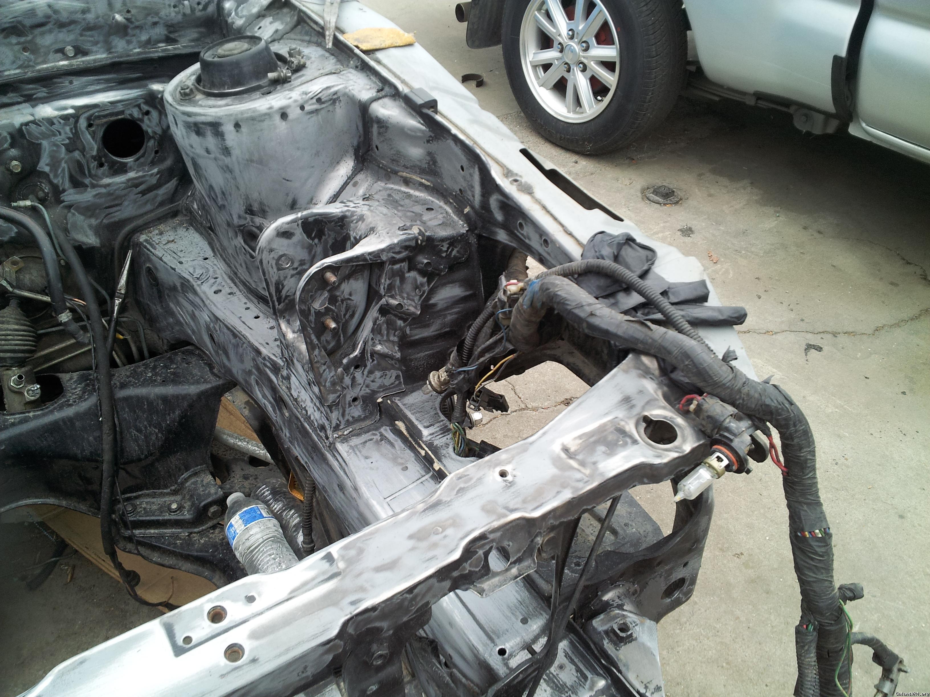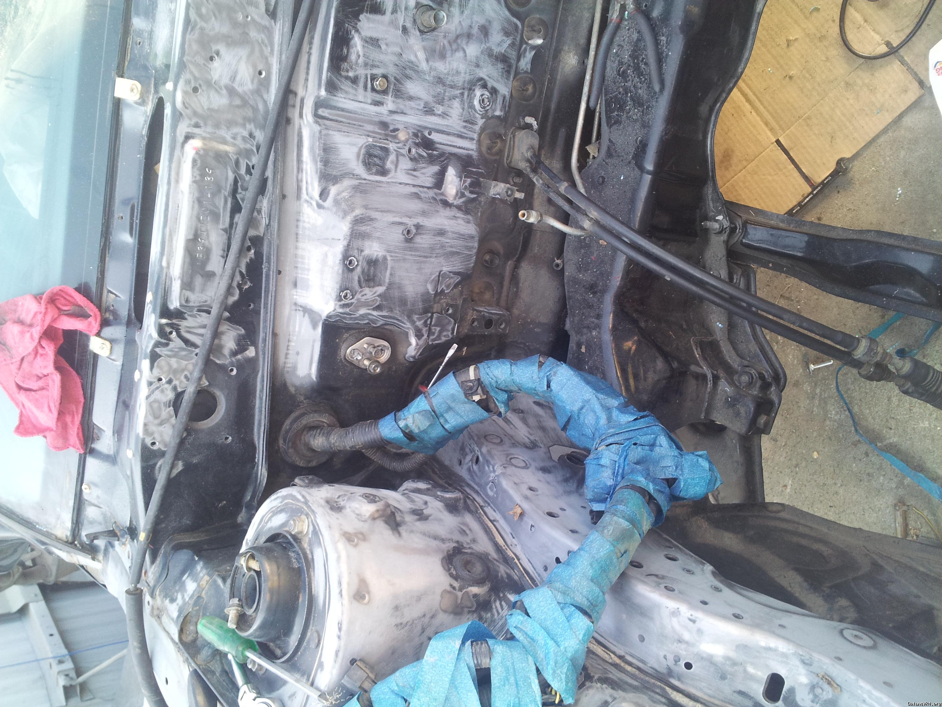 No, the motor was out of the car, but I didn't remove the wiring harness. I used that picture as a reference to show the OP how I positioned it out of the way when I was painting. I just draped it out of the engine bay and over the fender like in the picture.