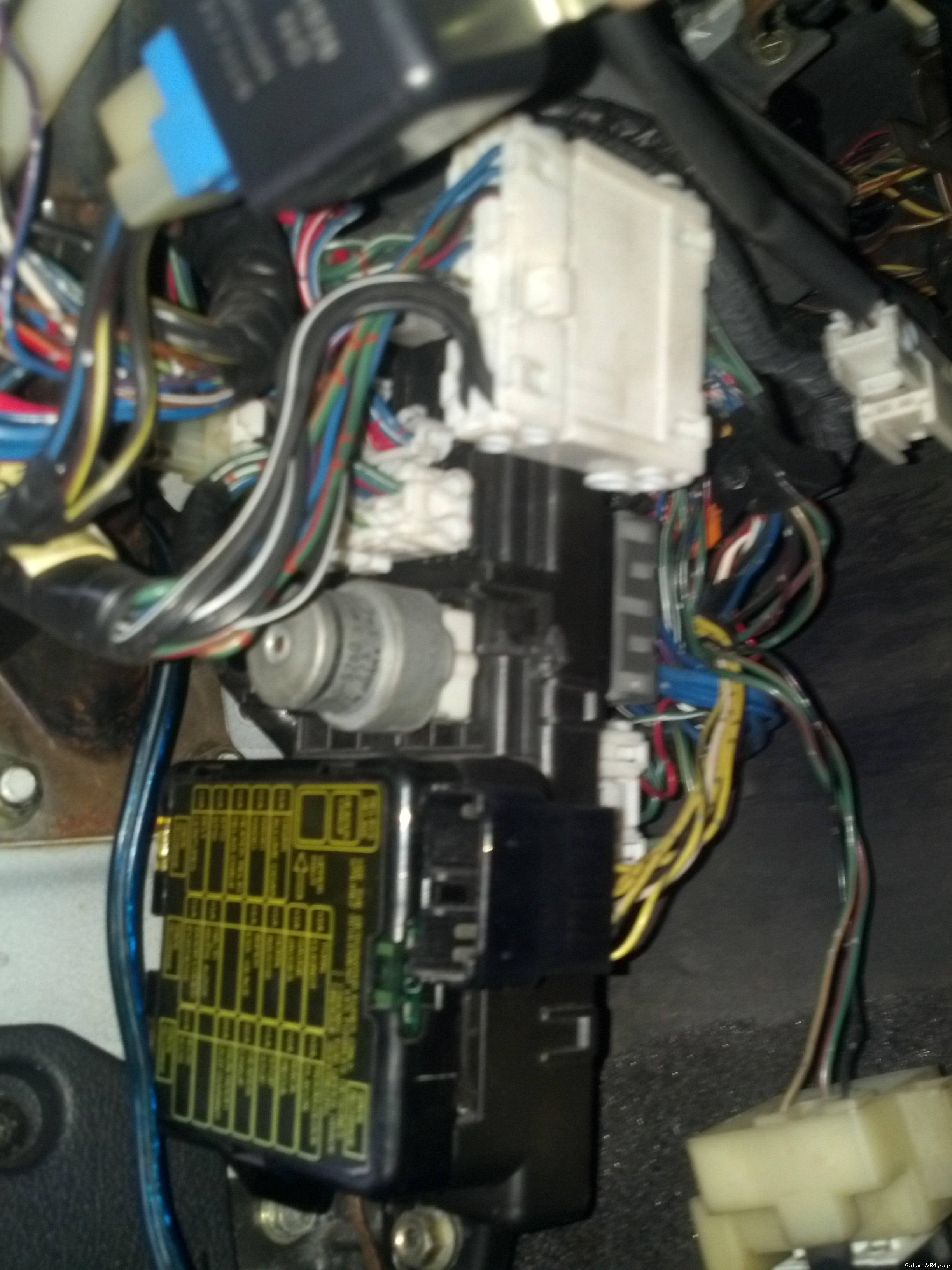 Heres the plugs that go to the body harness. Dsm on the left Galant on the right Galant has one extra plug as far as I remember. Mine was automatic so it had extra wires for the neutral safety switch on one harness making it bigger. In fact the whole ignition circuit is wired differently on my car than the dsm. I don't remember if this was entirely because it was automatic because the starter switch wiring is different on all Galants. Compare the diagrams, trace the differences. half of the interior stuff comes from the other side of the car and doesn't go through this harness. It's been 18 months since I've looked at it but if I had the manual in front of me I could tell you seconds after I turned to the right page.